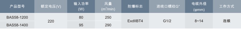 > BAS58防爆吊風扇(以下簡稱吊扇)適用于有ⅡA、 B T1-T4組含有爆炸性氣體混合物的場所,在交流50Hz、電壓220V的線路中作為通風降溫之用。吊扇能在下列條件下可靠工作: