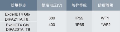 防爆標志:ExdeⅡBT4 Gb/DIPA21TA,T6、ExdⅡCT4 Gb/DIPA20TA, T6